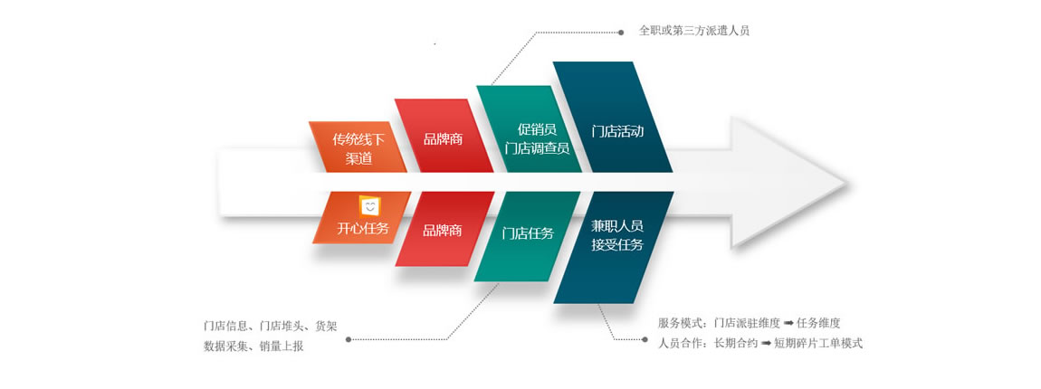 零售終端促銷員日常表現(xiàn)評估、銷量上報、貨架缺貨管理、促銷員出勤管理,后臺基本數(shù)據(jù)維護、生意分析決策 | |